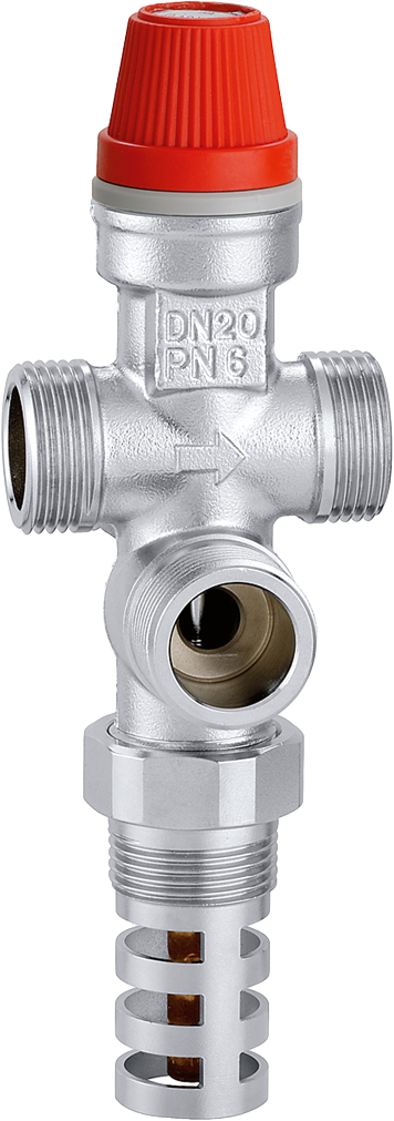 Termikus biztonsági szelep automatikus töltéssel vegyestüzelésű kazánokhoz, kézi ürítő gombbal.