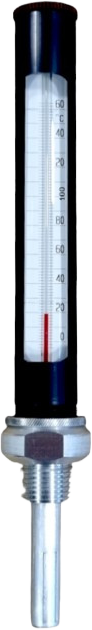 Kis egyenes fémtokos hőmérő, 0-160°C L=100mm